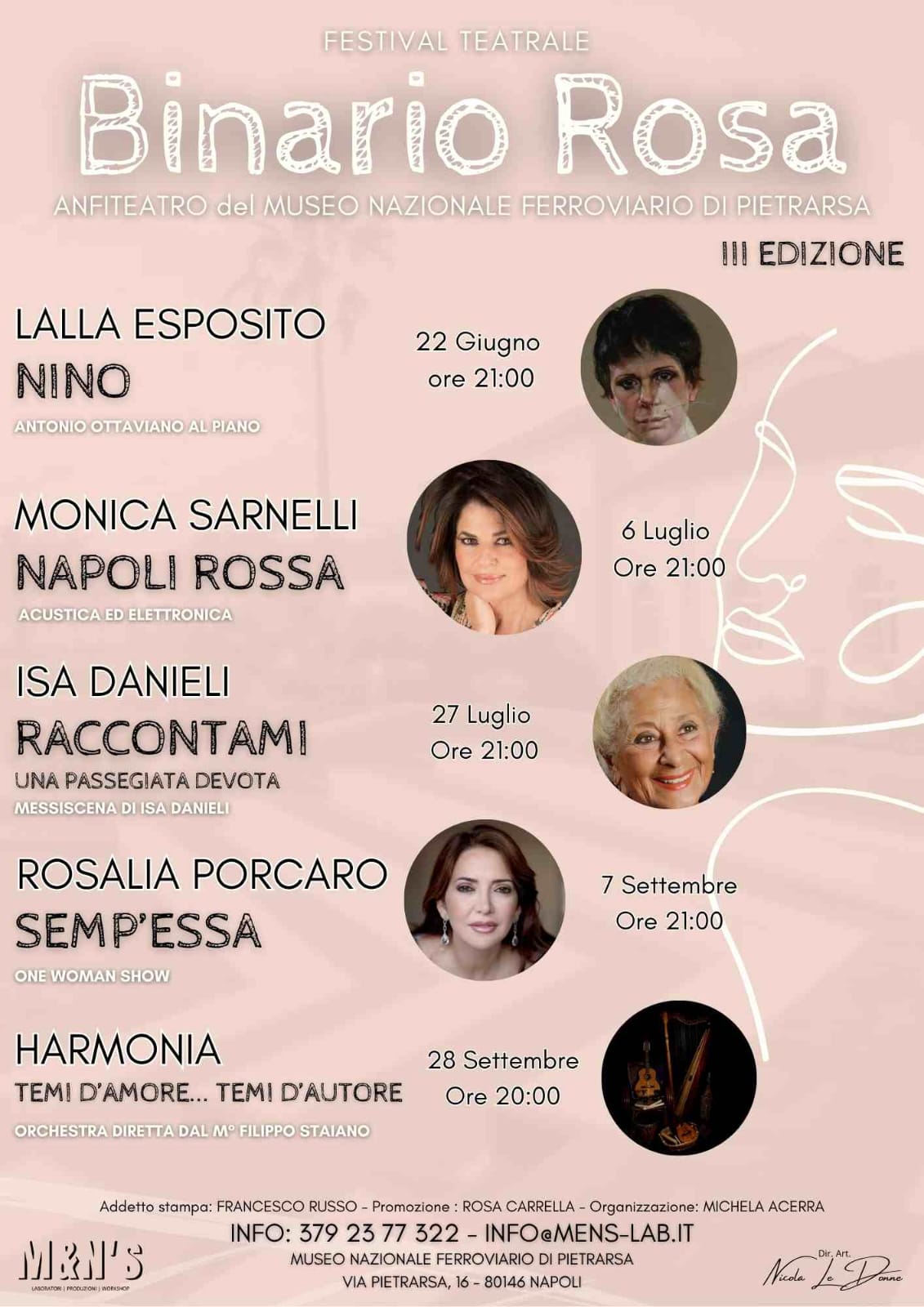 L’Anfiteatro del Museo Nazionale Ferroviario di Pietrarsa, situato in Via Pietrarsa 16 a Napoli, si prepara ad accogliere un nuovo ciclo di serate ricche di emozioni con la terza edizione del Festival Teatrale Binario Rosa. Il cartellone cresce e si arricchisce, abbracciando teatro di qualità e musica d’autore per creare esperienze uniche e coinvolgenti.