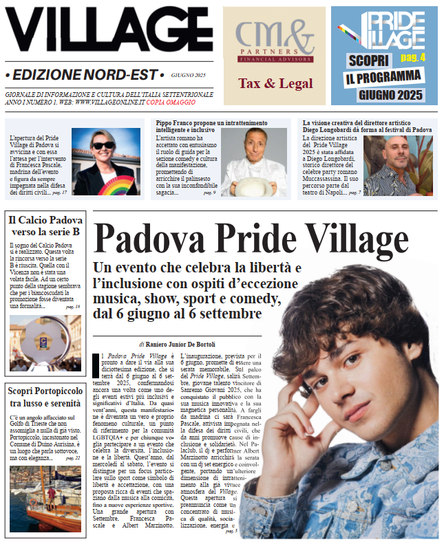 Village si presenta al pubblico proprio durante i giorni inaugurali del Padova Pride Village, uno degli appuntamenti estivi più partecipati e rappresentativi del panorama nazionale. Questo evento promuove valori fondamentali come inclusione, confronto e partecipazione, e la rivista accoglie pienamente questi ideali all’interno del proprio percorso editoriale. Ogni numero riflette una visione in cui la diversità rappresenta una ricchezza e in cui il dialogo rimane sempre al centro della narrazione.