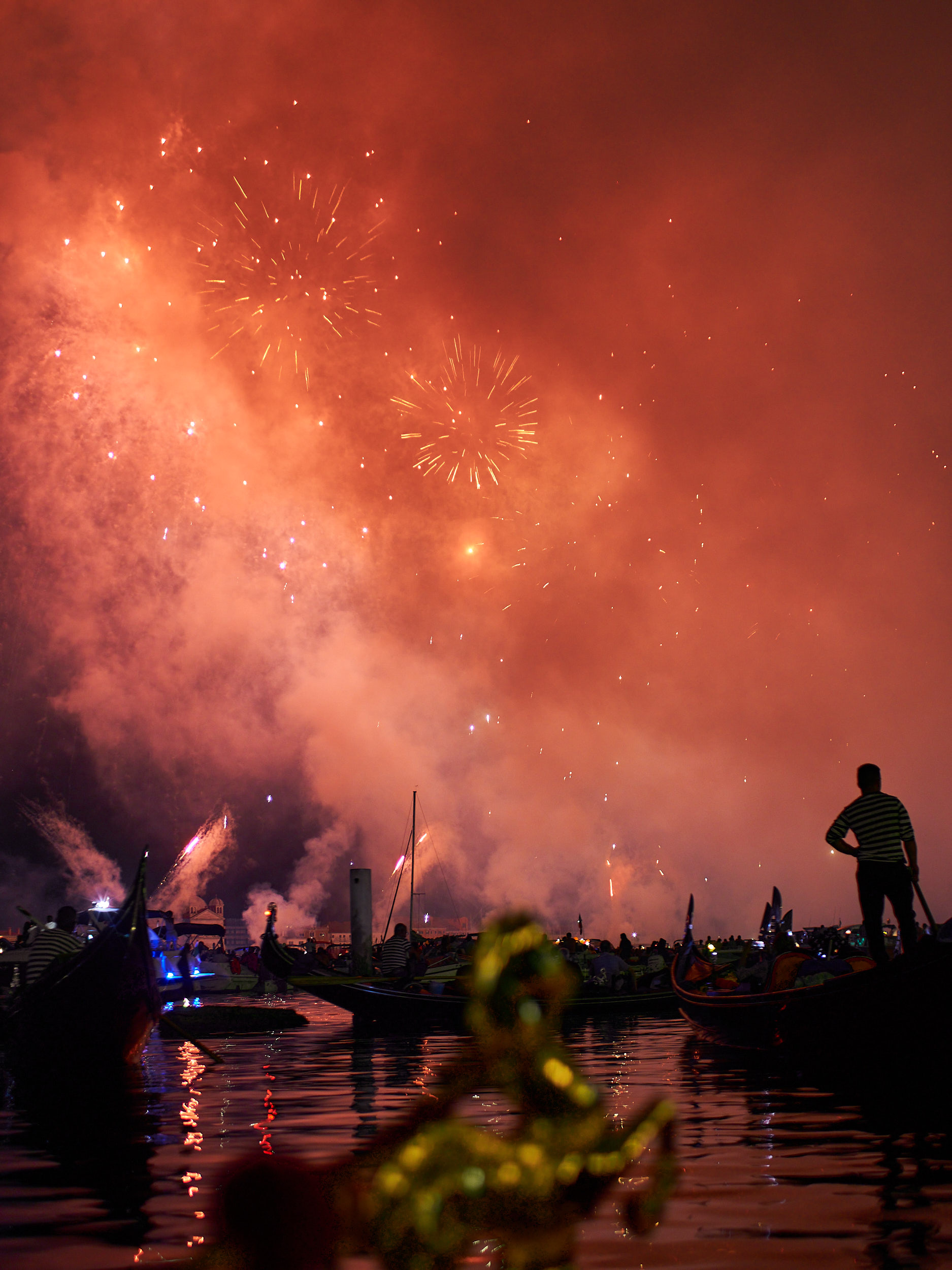 Durante la serata di sabato, la città si raccoglie attorno al Bacino di San Marco, dove un grande spettacolo pirotecnico illumina l’acqua e il cielo, dando vita a riflessi scenografici che trasformano l’intera laguna in una meraviglia visiva.